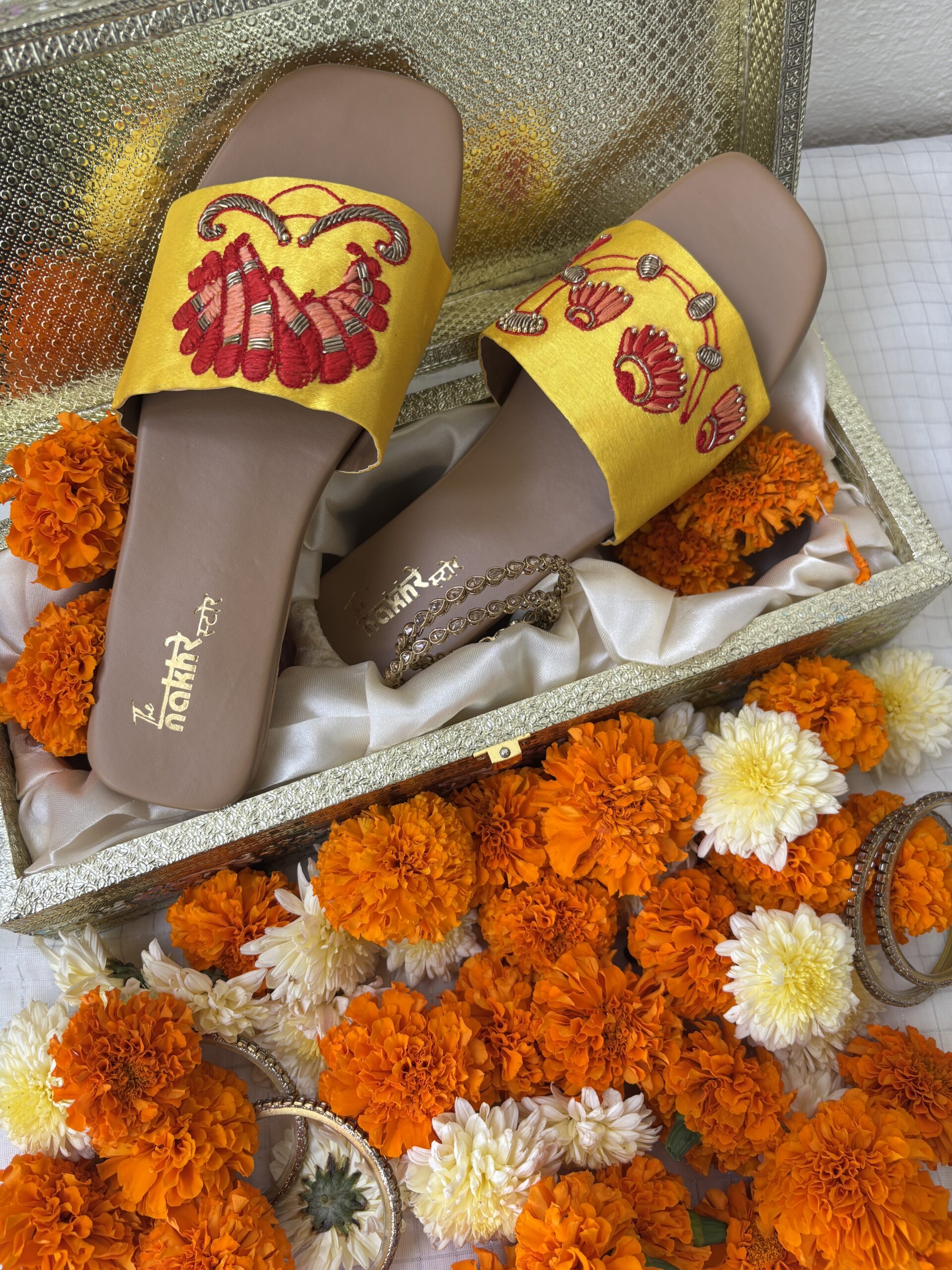 - Store the Nakhre sliders in a Muslin or Cotton cloth bag given with each purchase to protect them from dust and keep them bright and shiny